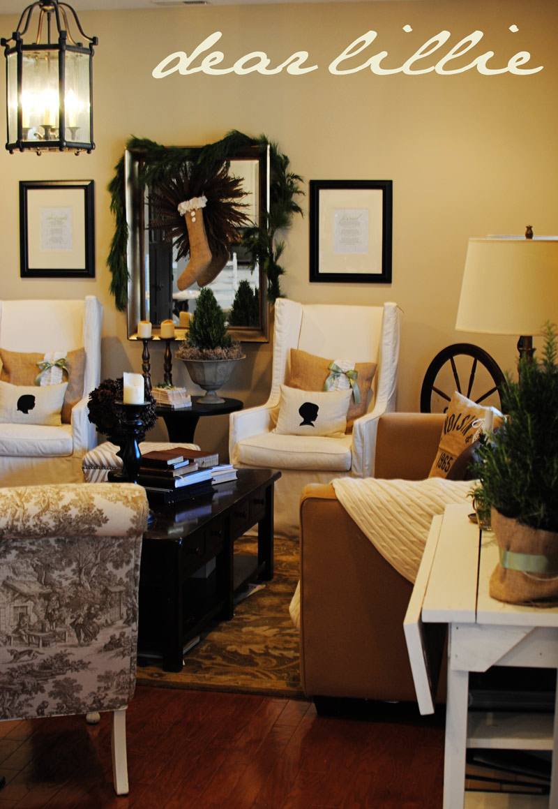 We normally have photos of Lillabel in these frames above the wingback chairs but I decided to just quickly type up two of my favorite Christmas songs and put them in the frames.